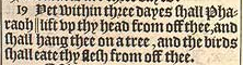 19 Yet within three dayes shall Pharaoh || lift vp thy head from off thee, and shall hang thee on a tree, and the birds shall eate thy flesh from off thee. [ || Or, reckon thee, and take thy office from thee. ]
