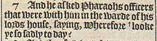 7 And he asked Pharaohs officers that were with him in the warde of his lords house, saying, wherefore +looke ye so sadly to day? [ +Heb. are your faceseuill?]