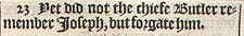 23 Yet did not the chiefe Butler remember Ioseph, but forgate him.
