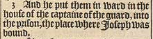 3 And he put them in ward in the house of the captaine of the guard, into the prison, the place where Ioseph was bound.