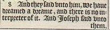 8 And they said vnto him, we haue dreamed a dreame, and there is no interpreter of it. And Ioseph said vnto them, Doe not interpretations belong to God? tell me them, I pray you.