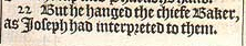 22 But he hanged the chiefe Baker, as Ioseph had interpreted to them.