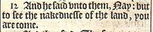 12 And he said vnto them, Nay: but to see the nakednesse of the land, you are come.