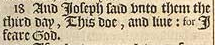 18 And Ioseph said vnto them the third day, This doe, and liue: for I feare God.
