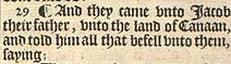 29 ¶ And they came vnto Iacob their father, vnto the land of Canaan, and told him all that befell vnto them, saying;