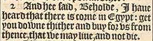 2 And hee said, Beholde, I haue heard that there is corne in Egypt: get you downe thither and buy for vs from thence, that we may liue, and not die.