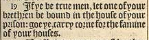 19 If ye be true men, let one of your brethren be bound in the house of your prison: goe ye, carry corne for the famine of your houses.