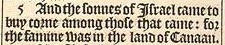 5 And the sonnes of Israel came to buy corne among those that came: for the famine was in the land of Canaan.