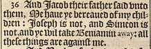 36 And Iacob their father said vnto them, We haue ye bereaued of my children: Ioseph is not, and Simeon is not, and ye wil take Beniamin away: all these things are against me.