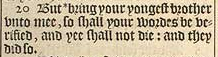 20 But *bring your yongest brother vnto mee, so shall your wordes be verified, and yee shall not die: and they did so. [ * Chap. 43. 5. ]