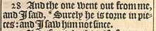 28 Und der eine verließ mich und ich sagte ‘*Sicherlich wurde er in Stücke gerissen’: Und ich sah ihn seither nicht.[*Genesis 37:33]