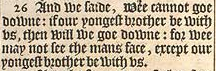 26 And we saide, Wee cannot goe downe: if our yongest brother be with vs, then will we goe downe: for wee may not see the mans face, except our yongest brother be with vs.