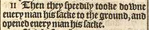 11 Then they speedily tooke downe euery man his sacke to the ground, and opened euery man his sacke.