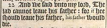 22 And we said vnto my lord, The lad cannot leaue his father: for if hee should leaue his father, his father would die.