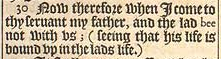 30 Now therefore when I come to thy seruant my father, and the lad bee not with vs; (seeing that his life is bound vp in the lads life.)