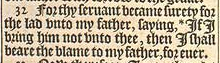 32 For thy seruant became surety for the lad vnto my father, saying, *If I bring him not vnto thee, then I shall beare the blame to my father, for euer. [ * Chap. 43. 9. ]