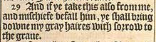 29 And if ye take this also from me, and mischiefe befall him, ye shall bring downe my gray haires with sorrow to the graue.