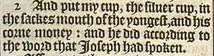 2 And put my cup, the siluer cup, in the sackes mouth of the youngest, and his corne money: and he did according to the word that Ioseph had spoken.
