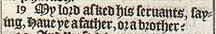 19 My lord asked his seruants, saying; Haue ye a father, or a brother?
