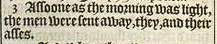 3 Assoone as the morning was light, the men were sent away, they, and their asses.
