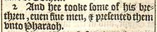 2 And hee tooke some of his brethren, euen fiue men, & presented them vnto Pharaoh.