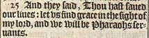 25 And they said, Thou hast saued our liues: let vs find grace in the sight of my lord, and we will be Pharaohs seruants.