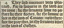 4 Sie sagten außderm zu Pharao “Um im Land zu wohnen sind wir gekommen: Denn deine Diener haben keine Weide für ihre Herden, denn die Hungsersnot ist schweer im Land von Kanaan: Nun darum bitten wir dich, lass deine Diener im and Gosen wohnen.”
