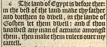 6 The land of Egypt is before thee: in the best of the land make thy father and brethren to dwell, in the lande of Goshen let them dwell: and if thou knowest any man of actiuitie amongst them, then make them rulers ouer my cattell.