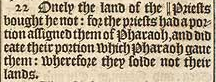 22 Onely the land of the ||Priests bought he not: for the priests had a portion assigned them of Pharaoh, and did eate their portion which Pharaoh gaue them: wherefore they solde not their lands. [ || Or, Princes ]