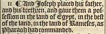 11 ¶ And Ioseph placed his father, and his brethren, and gaue them a possession in the land of Egypt, in the best of the land, in the land of Rameses, as Pharaoh had commanded.