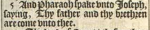 5 And Pharaoh spake vnto Ioseph, saying, Thy father and thy brethren are come vnto thee.