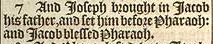 7 And Ioseph brought in Iacob his father, and set him before Pharaoh: and Iacob blessed Pharaoh.