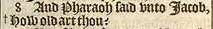 8 And Pharaoh said vnto Iacob, +How old art thou? [ +Heb. how many are the dayes of the yeeres of thy life?]