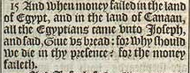 15 And when money failed in the land of Egypt, and in the land of Canaan, all the Egyptians came vnto Ioseph, and said, Giue vs bread: for why should we die in thy presence? for the money faileth.