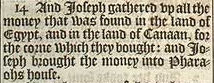 14 And Ioseph gathered vp all the money that was found in the land of Egypt, and in the land of Canaan, for the corne which they bought: and Ioseph brought the money into Pharaohs house.