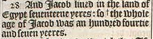 28 And Iacob liued in the land of Egypt seuenteene yeres: so +the whole age of Iacob was an hundred fourtie and seuen yeeres. [ +Hebr. the dayes of the yeeres of his life.]