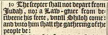 10 The scepter shall not depart from Iudah, nor a Law-giuer from betweene his feete, vntill Shiloh come: and vnto him shall the gathering of the people be: