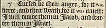 7 Cursed be their anger, for it was fierce; and their wrath, for it was cruell: I will diuide them in Iacob, and scatter them in Israel.