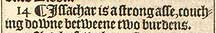 14 ¶ Issachar is a strong asse, couching downe betweene two burdens.