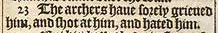 23 The archers haue sorely grieued him, and shot at him, and hated him.