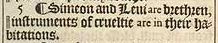 5 ¶ Simeon and Leui are brethren, || instruments of crueltie are in their habitations. [ || Or, their swords are weapons of violence.]