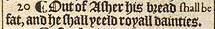 20 ¶ Out of Asher his bread shall be fat, and he shall yeeld royall dainties.