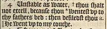 4 Unstable as water, +thou shalt not excell, because thou *wentest vp to thy fathers bed: then defiledst thou it. || He went vp to my couche. [ + Hebr. doe not thou excell. , * Chap. 35. 22. 1. chro. 5.1. , || Or, my cowche is gone.]