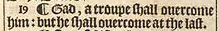19 ¶ Gad, a troupe shall ouercome him: but he shall ouercome at the last.