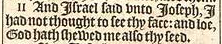 11 And Israel said vnto Ioseph, I had not thought to see thy face: and loe, God hath shewed me also thy seed.