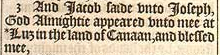 3 Und Jakob sagte zu Joseph “Gott der Allmächtige erschien mir in *Lus im Land von Kanaan und segnete mich, [Genesis 28:13 & 35:6]