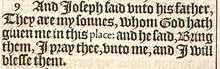 9 And Ioseph said vnto his father, They are my sonnes, whom God hath giuen me in this place: and he said, Bring them, I pray thee, vnto me, and I will blesse them.