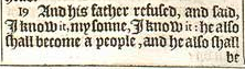 19 And his father refused, and said, I know it, my sonne, I know it: he also shall become a people, and he also shall be great: but truely his yonger brother shall be greater then he; and his seede shall become a +multitude of nations. [ +Hebr: fulnesse. ]