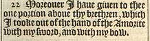 22 Moreouer I haue giuen to thee one portion aboue thy brethren, which I tooke out of the hand of the Amorite with my sword, and with my bow.
