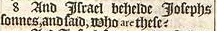 8 And Israel behelde Iosephs sonnes, and said, Who are these?
